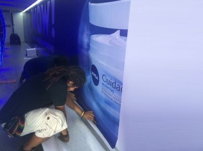 En Vinil, lona, papel tapiz, micro perforado, electroestático, floorgraphic, película back light, entre otros